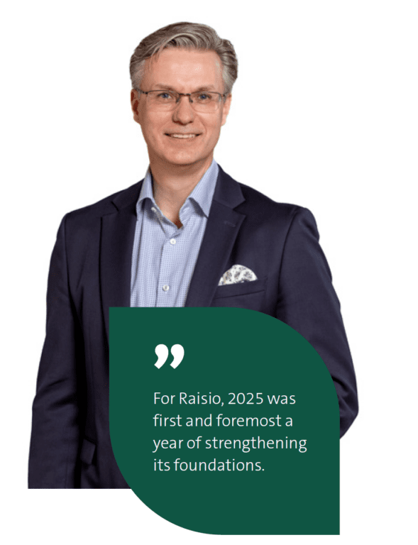 For Raisio, 2025 was first and foremost a year of strengthening its foundations. During the year, we deliberately focused in particular on improving our performance, clarifying the focus of our operations and strengthening our structures in order to create a sustainable foundation for future growth.